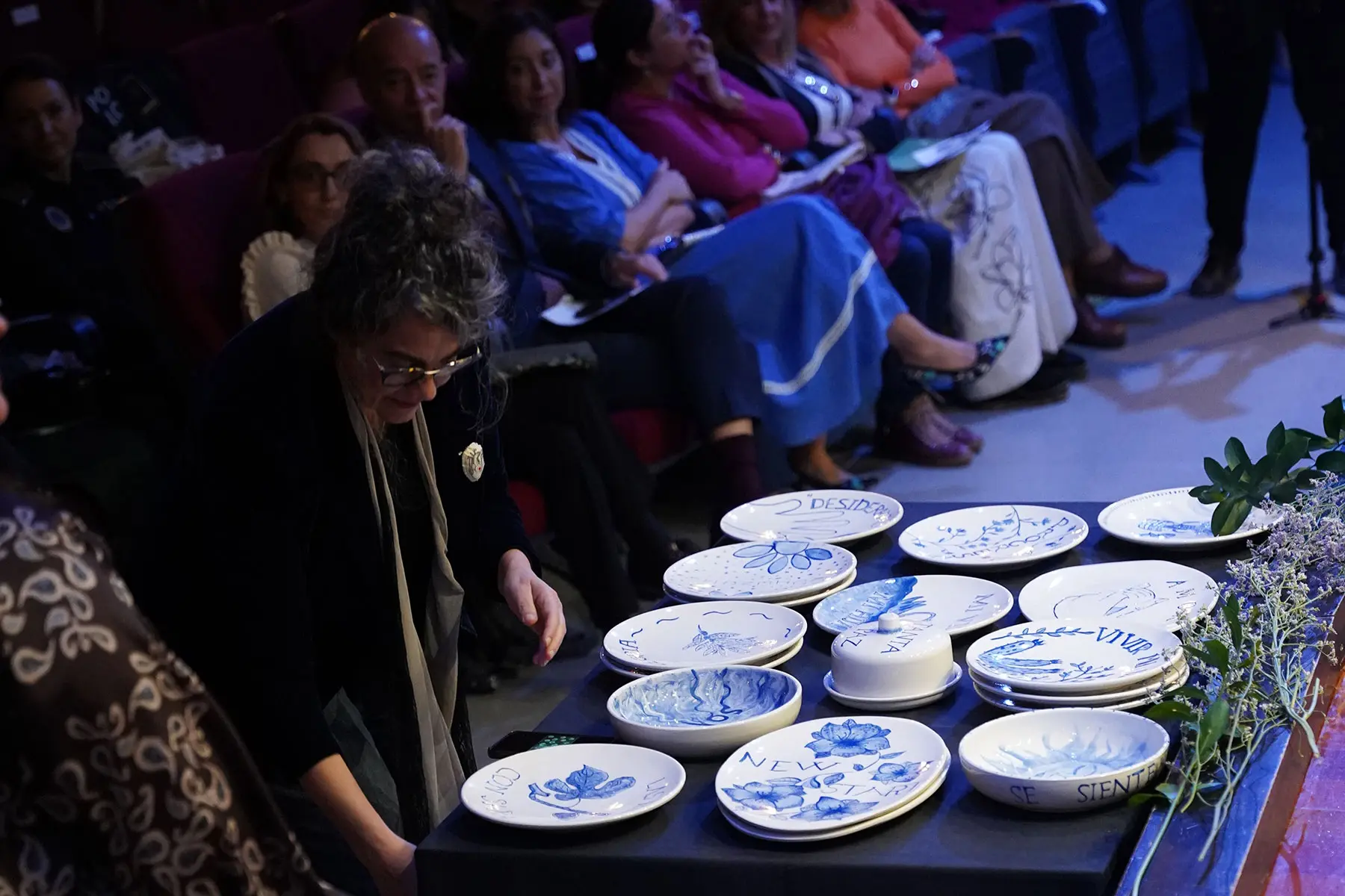 Tras el audiovisual, las participantes fueron subiendo al escenario, una a una, para depositar en silencio su plato sobre una gran mesa común.